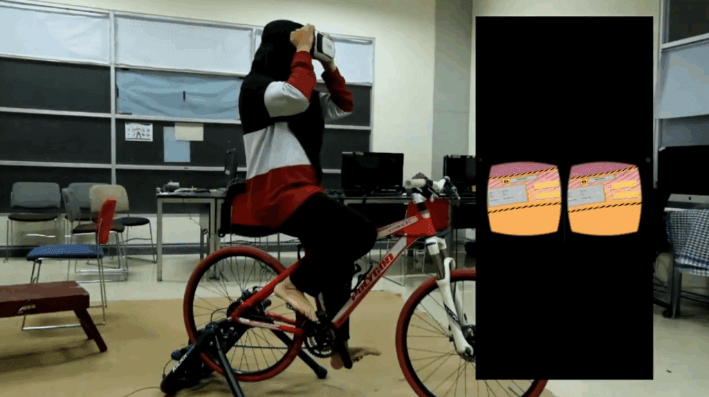 Sistem ini menggabungkan sepeda statis dengan teknologi VR untuk menciptakan pengalaman bersepeda yang imersif dan realistis. Pengguna tidak lagi sekadar mengayuh di tempat, tetapi seolah-olah menjelajahi berbagai rute menarik—mulai dari jalur pegunungan, pedesaan, perkotaan, hingga lintasan ekstrem—melalui tampilan video 360° yang responsif terhadap gerakan dan kecepatan kayuhan.